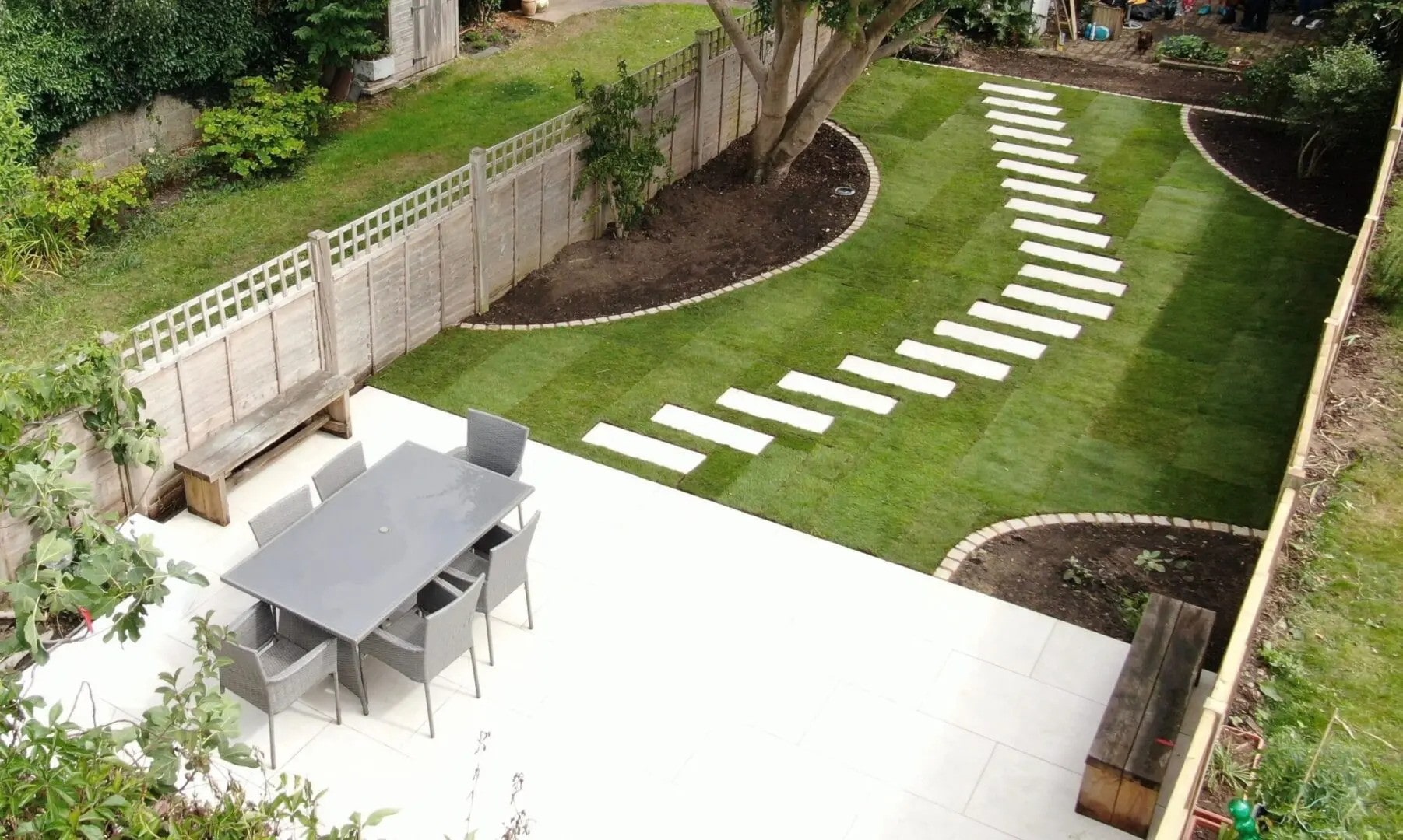 - Hard Landscaping – Patios, paths, decking, and structural features.